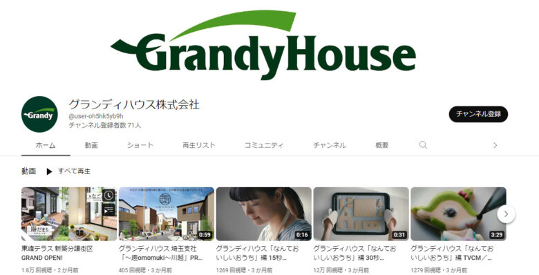 グランディハウスのYouTubeチャンネルはこちらです。