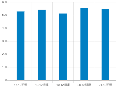 過去5年間の推移を見てみると、500~550万円で安定しています。