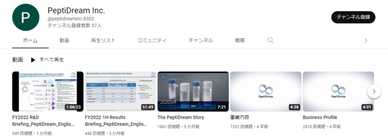 ペプチドリームのYouTubeチャンネルはこちらです。