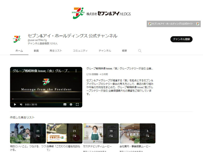 セブン&アイ・ホールディングスのYouTubeチャンネルはこちらです。